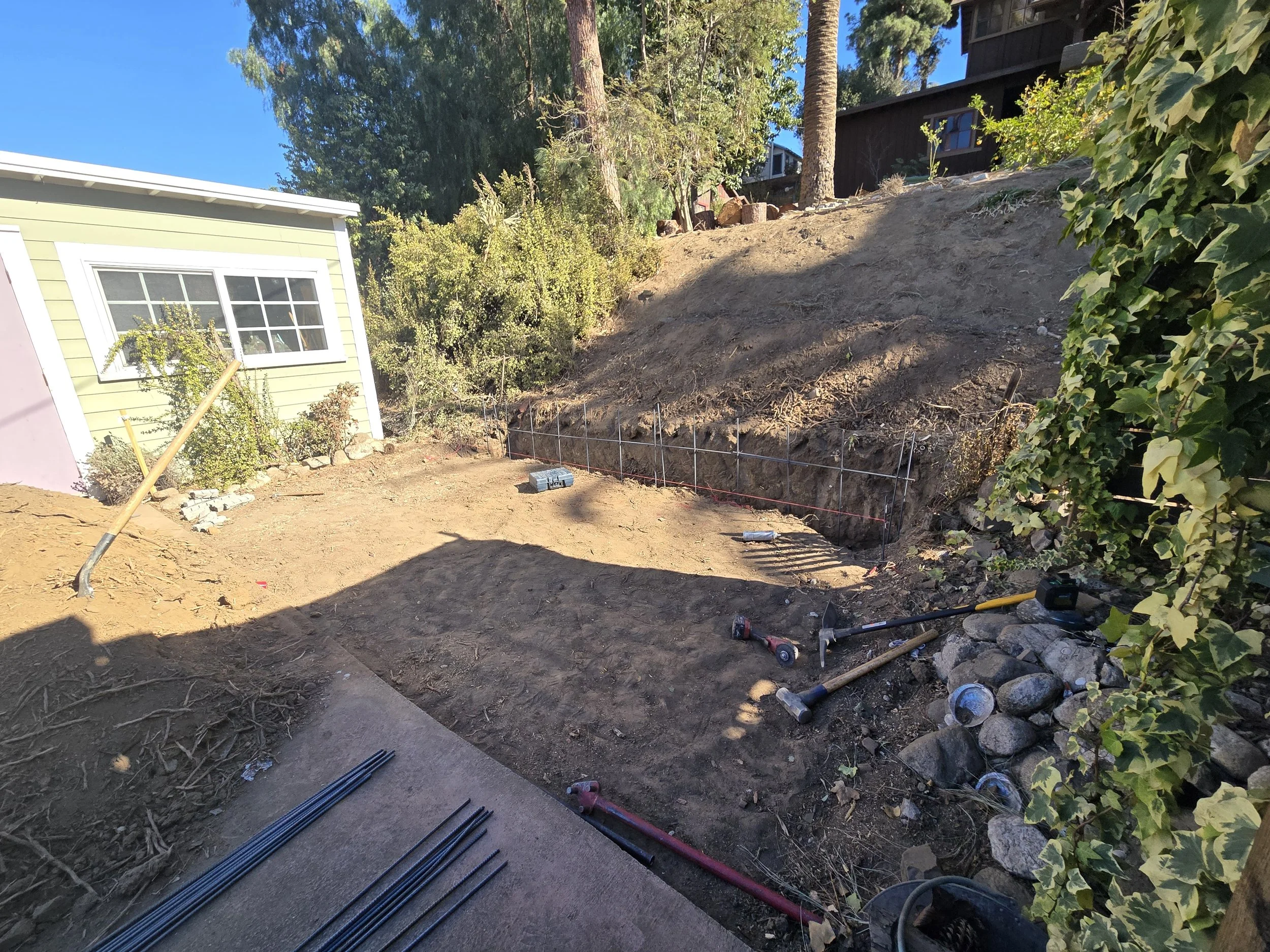 This custom-built shed structure is designed with durability and functionality in mind. The foundation incorporates a retaining wall that forms part of the shed’s structure, complete with proper drainage to ensure long-term stability and protection from water buildup. The shed is framed with high-quality lumber and finished with wood siding painted in a modern color scheme for a clean, stylish look.